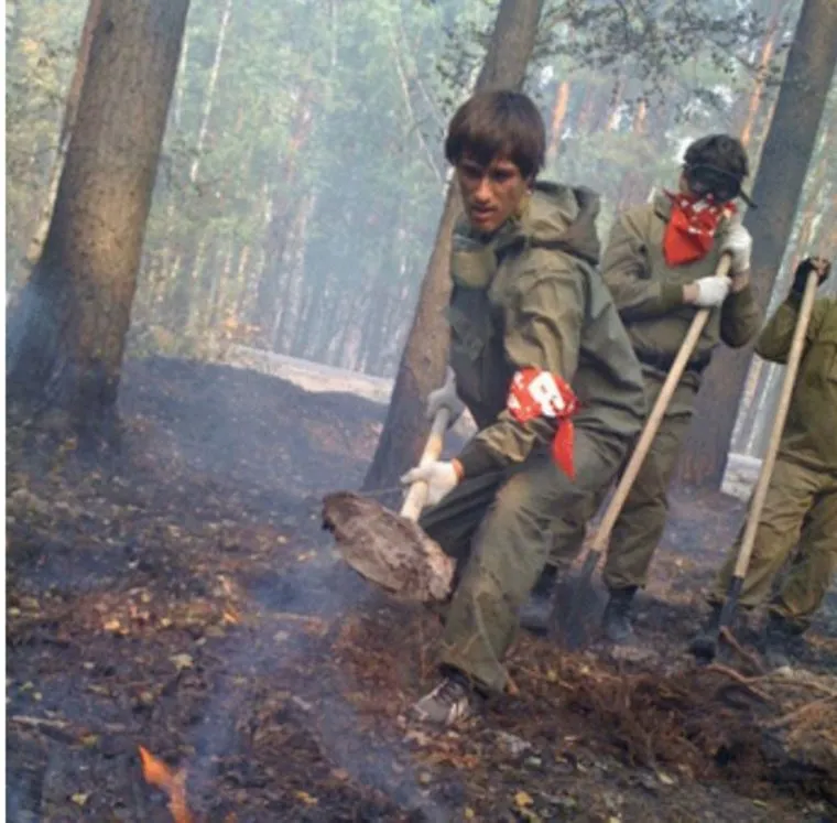 Руслан Гаттаров тушит пожар в тонких кроссовках. Это фото он выложил в своем аккаунте, но потом запись удалил