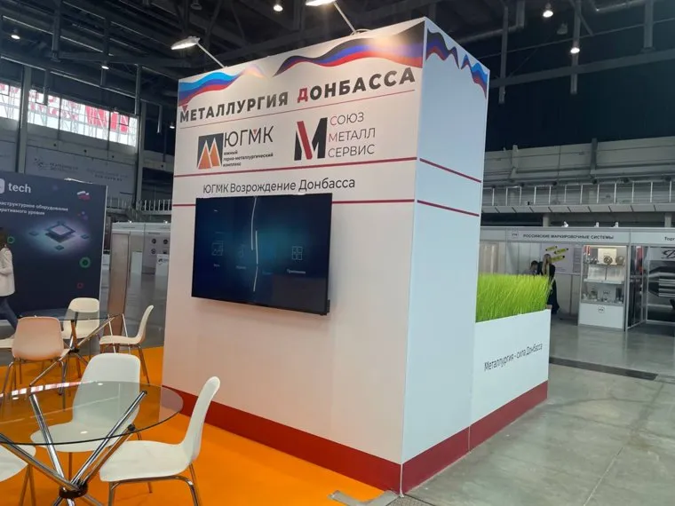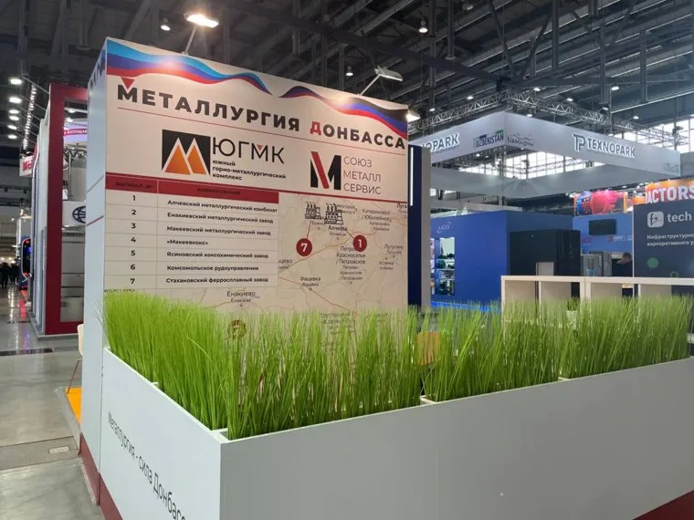 10:10 На выставке открыли стенд завода ЮГМК. Его открыли представители Донецкой и Луганской народных республик.