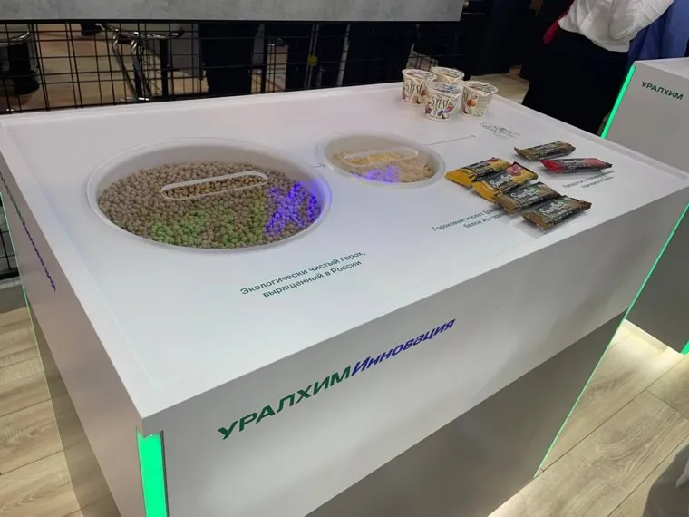 10:33 «Уралхим инновация» показала на выставке продукты с уральским гороховым молоком. С его использованием делают йогурты, батончики и колбасу.