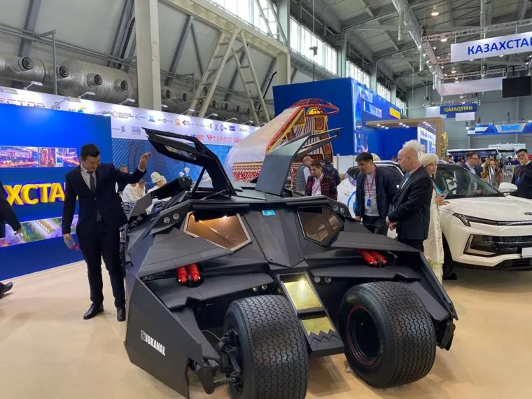 10:56 На стенде Казахстана показали копию «Бэтмобиля» из фильмов про Бэтмена. Посетители не сразу нашли у сложного агрегата руль.