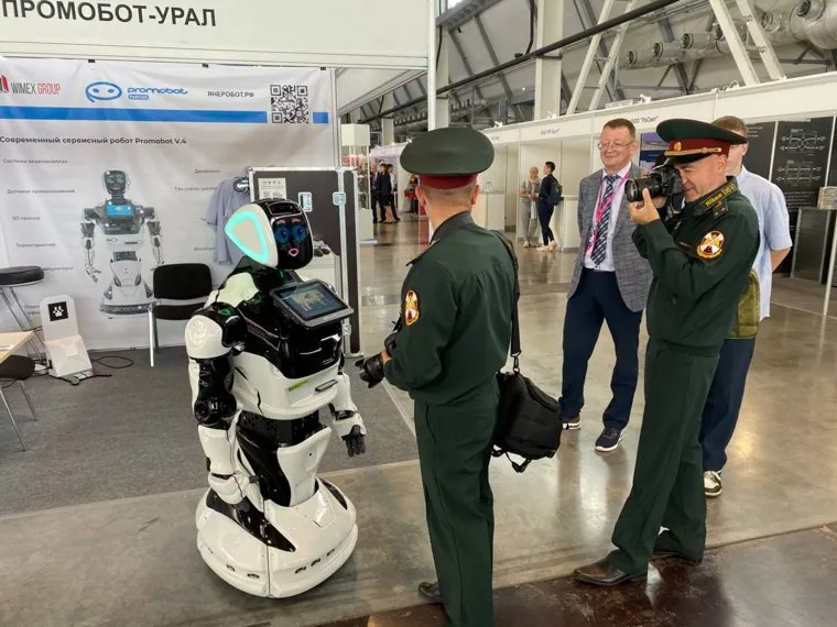 10:39 Представители Центрального военного округа оценили сервисного робота Promobot V.4. Военные сфотографировали его и посмотрели функционал техники.