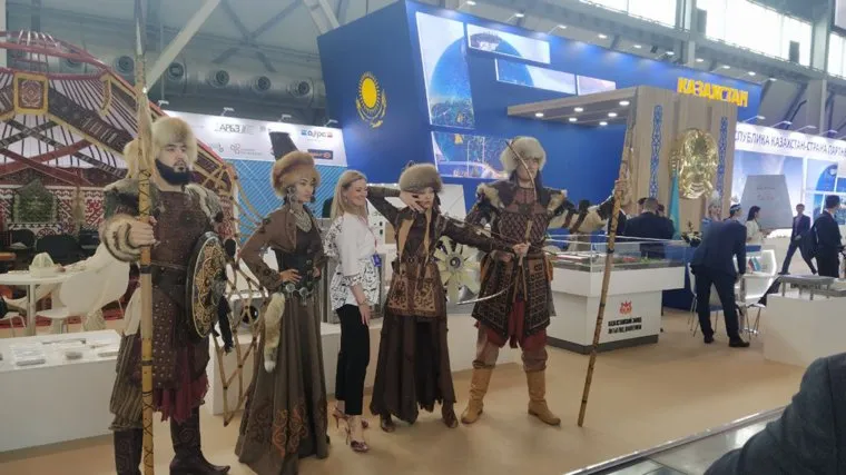10:51 На одном из стендов показали исторические костюмы народов Казахстана. Также там сыграли на национальных музыкальных инструментах.