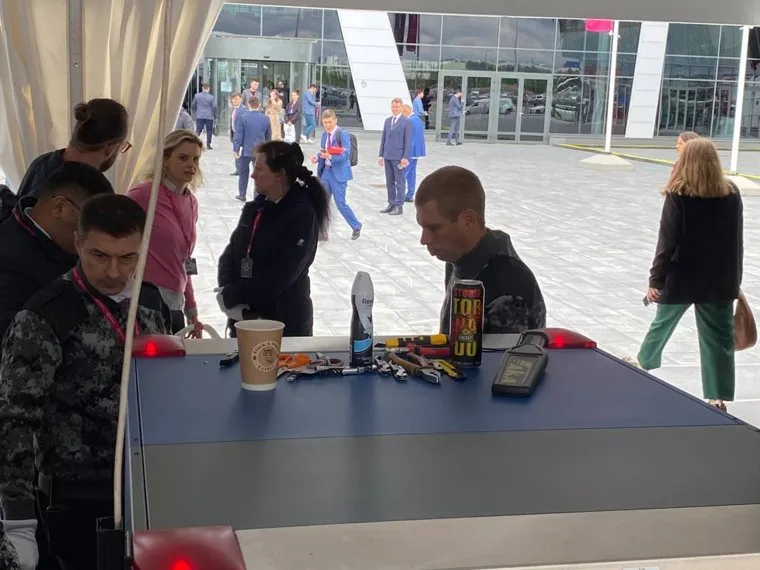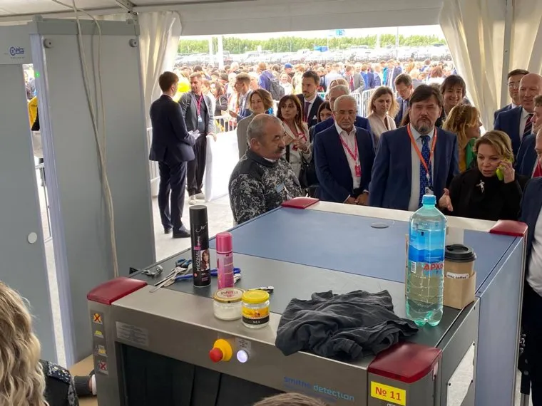 09:46 У некоторых посетителей «Иннопрома» на входе забрали баночки икры и меда, лак для волос, дезодорант, освежитель воздуха, а также плоскогубцы, ножницы и ножи. Все эти предметы запрещено проносить на выставку.