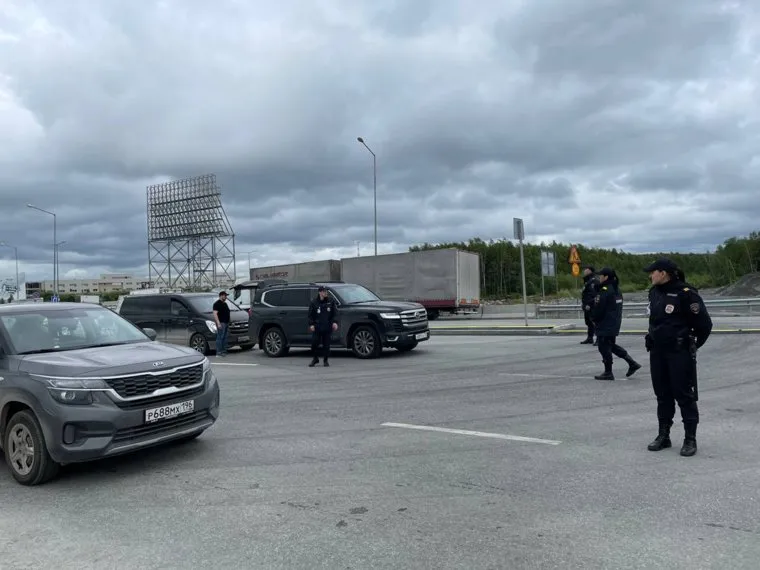 09:22 Силовики досматривают автомобили, проверяют багажники. На месте работают кинологи со служебными собаками.
