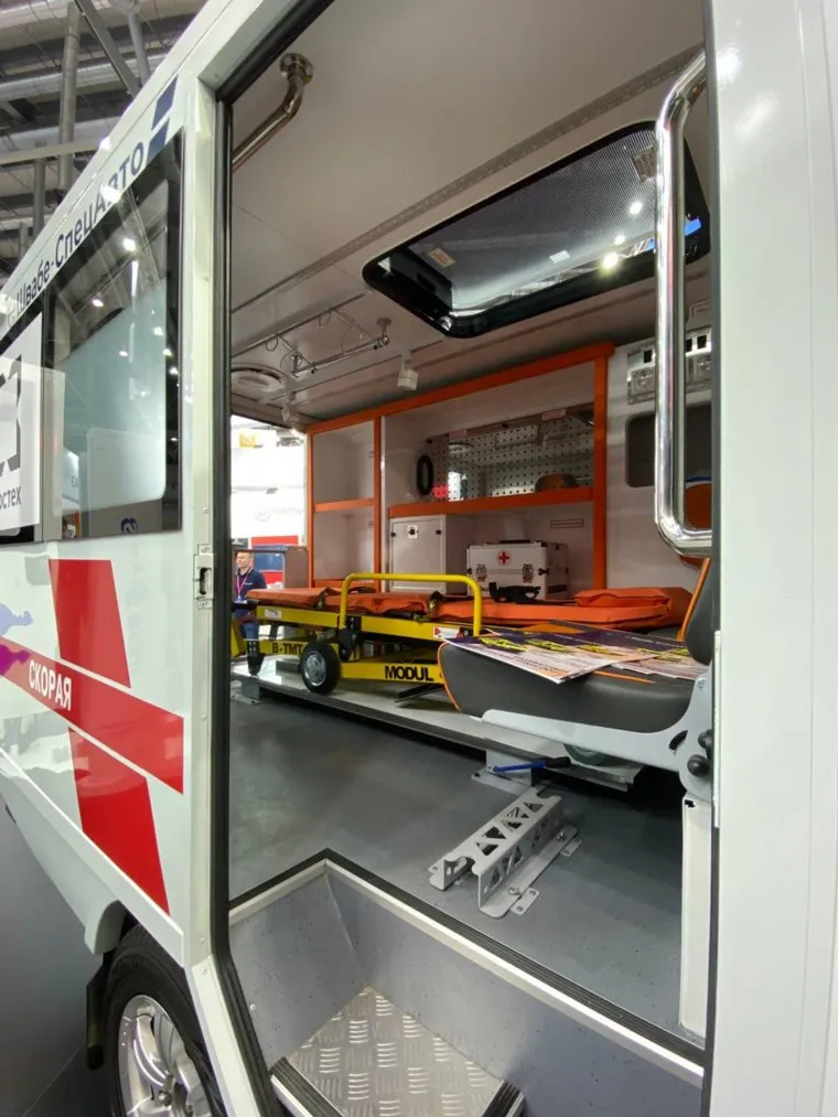 11:31 На выставке показали современный отечественный автомобиль для медработников. Он оснащен для оказания скорой помощи.
