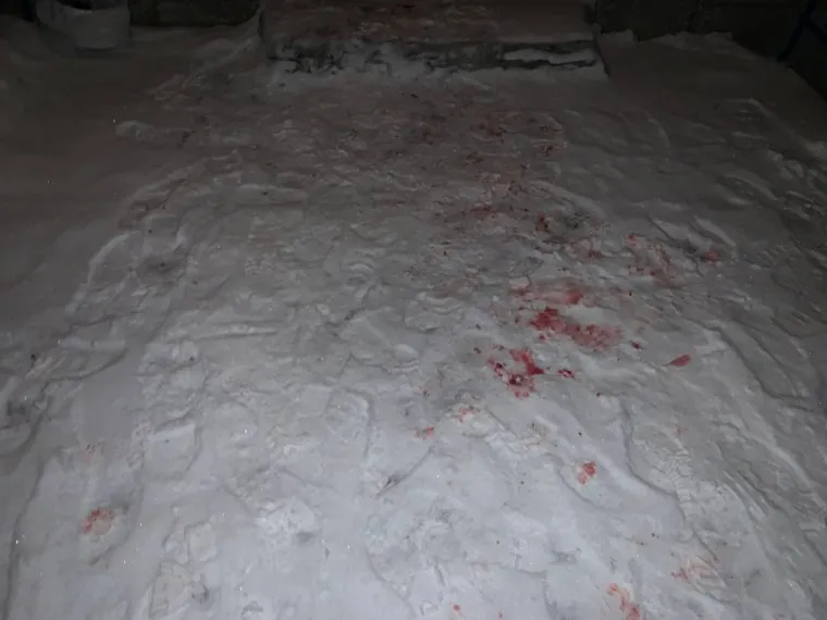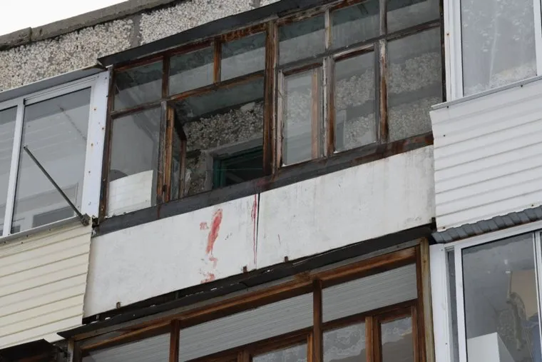 14:10 На снегу до сих пор видны следы крови в том месте, куда упала женщина. На балконе также осталась кровь.