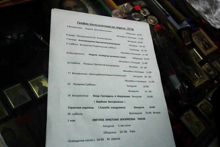 На первом этаже храма ведется торговля церковными товарами, оформлен иконостас, есть даже частицы святых мощей. На взгляд обывателя — обычная часовня. Однако этот приход не имеет никакого отношения к Курганской епархии Русской православной церкви, равно как и её руководитель, епископ Варух. Духовенство да и многие верующие горожане обходят церковь стороной, отмечая, что службу священник ведет не по канонам.
