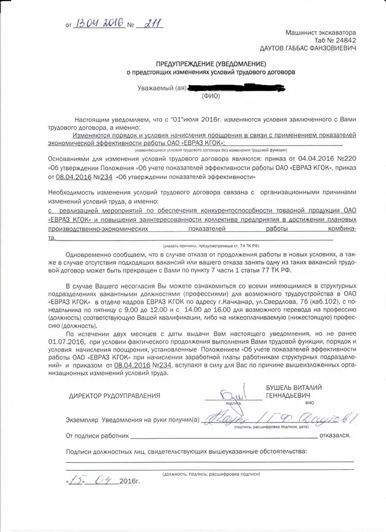 Такие уведомления получили все работники комбината
