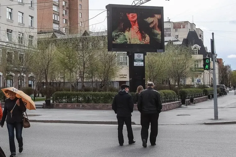 Рекламные ролики «мужских клубов» постоянно крутятся в прямой видимости мэрии Тюмени.