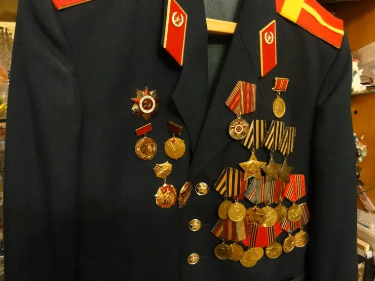 Парадный китель фронтовика. Справа вверху — ордена Славы всех трех степеней