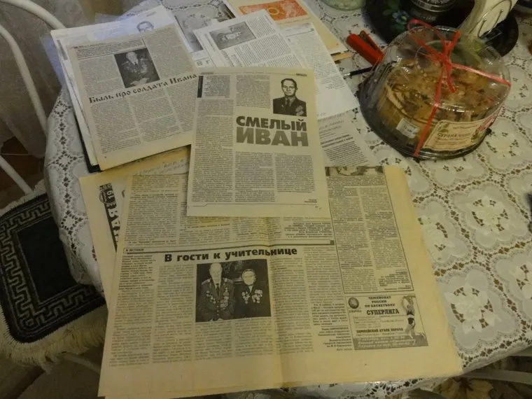 В Верхнем Тагиле приходится испытать на себе нехитрое, но совершенно искреннее уральское гостеприимство: по прибытии меня сразу усаживают на стол, потчуют блинами и наваристым супом. «А отец у нас в последнее время худеть стал, — сетует хозяйка Ольга Викторовна, жена сына ветерана. — Он всегда был у нас откормленный, а в последний год резко похудел. Раньше в китель еле влазил, сейчас он на нем висит. Да и китель-то мы на него теперь редко одеваем: он большую часть времени проводит в постели. Жаль, что только сейчас стали так часто приходить журналисты: когда ему было 80-85 лет, он многое чего мог рассказать».