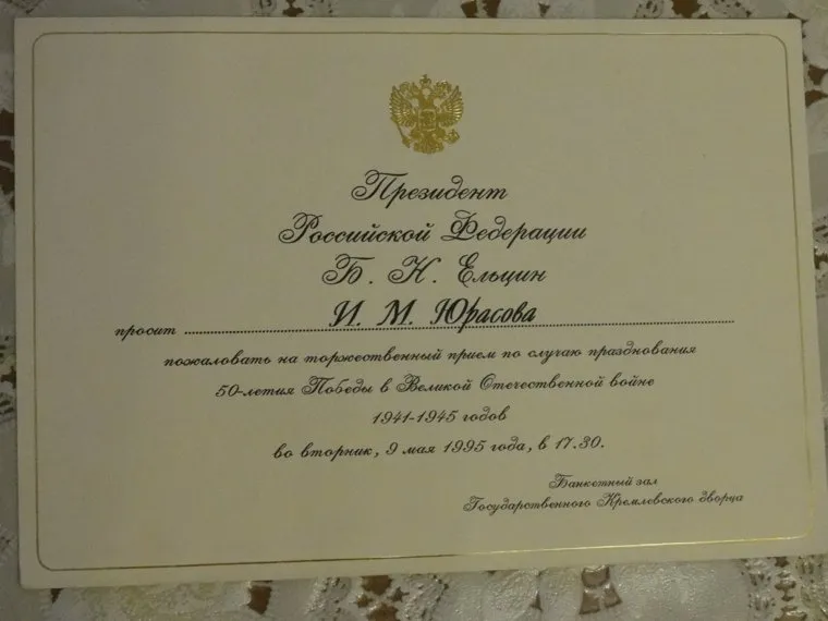 У семьи Юрасова — огромный архив фотографий, газетных вырезок, открыток. «Эта — от Росселя, а поздравительный адрес — от полпреда Холманских, а вот это — от его предшественника Латышева», — поясняет невестка Ивана Викторовича. «Настенные часы — от Ельцина, а вот эти, наручные — от Путина», — добавляет сын ветерана.