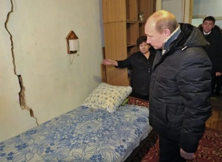 Владимир Путин в одной из аварийных квартир поселка Роза