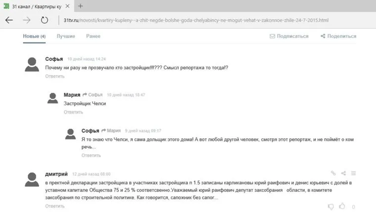 «Ситуация с дольщиками, у которых возникли проблемы, сейчас находится на жестком контроле губернатора. И это касается не только «Гринфлайта», но и и других строительных фирм, включая «ЧелСИ», — подчеркнул пресс-секретарь главы региона Дмитрий Федечкин . — За их строительством в Чурилово мы тоже следим и знаем, какие возникли вопросы к застройщику».