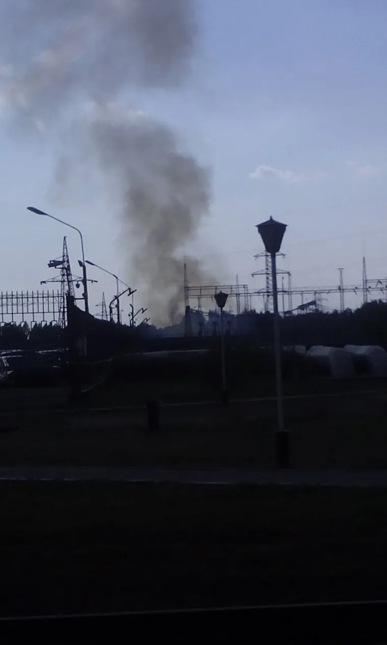 Место аварии видно даже с дороги: возле сетчатого забора с колючей проволокой на десятках квадратных метров — опаленная трава и обожженная земля. Здесь горело масло, которое выплеснулось из взорвавшегося конденсатора. «Сперва раздался взрыв, потом — треск», — расскажет потом очевидец. Люди видели и искры от электродуги — короткого замыкания на соседних с местом взрыва проводах. По словам наблюдателя, искры взлетали «на полнеба».