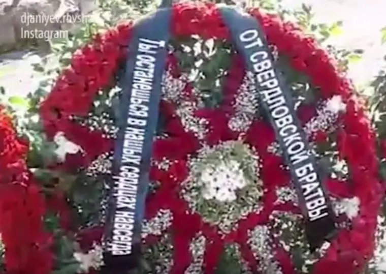 Венок, присланный на похороны Ровшана Джаниева в Ленкорань 19 августа «свердловской братвой»
