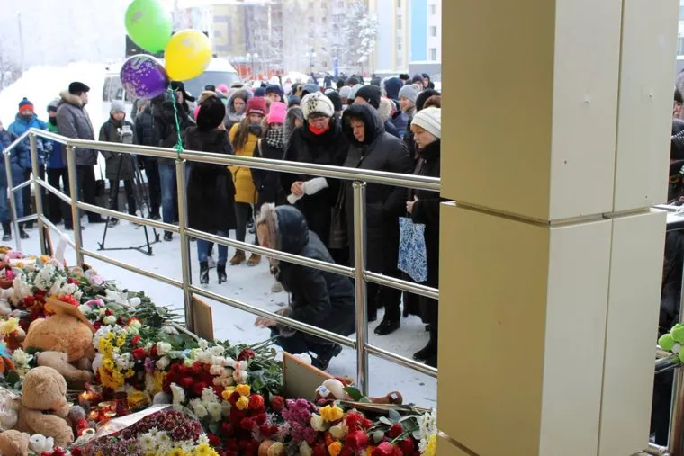 Нефтеюганцы несут цветы и игрушки к зданию «Сибиряка»