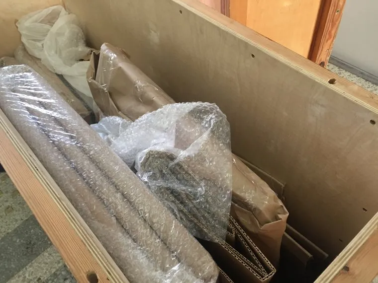 Однако, как рассказала «URA.RU» Татьяна Леонгард, в понедельник, 13 февраля, она застала перевозку картин из музея ИЗО. Общественница представила нашему агентству снимки, на которых видны картины, упакованные в бумагу и полиэтиленовую «пупырчатую» пленку, сложенные в обычные деревянные ящики.
