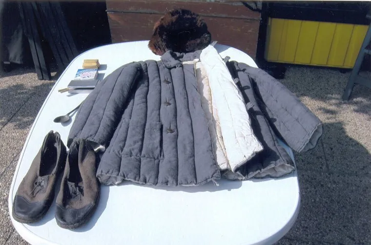 Вещи, в которых Герхард вернулся домой из плена. Внизу — «лапти» из шинели (носки сделаны из автомобильных шин)