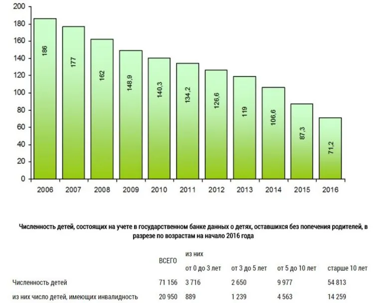 Численность детей, состоящих на учете в государственном банке данных о детях, оставшихся без попечения родителей (тысяч детей). По мнению экспертов, тенденция на уменьшение сирот сходит на нет
