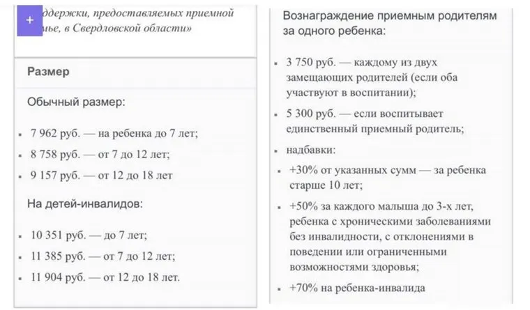 Размеры пособий и «зарплат» приемным родителям в Свердловской области