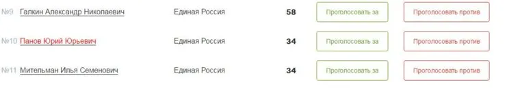 Подозрение у администрации сайта вызвал неожиданный всплеск активности, когда за одну минуту тот или иной избранник получал несколько десятков голосов. Таким депутатам просто «обнулили» голоса, да еще выделили их красным цветом. В антигерои среди российских парламентариев попал Олег Колесников , а из депутатов гордумы Юрий Панов — тот самый, что лишился поста руководителя политсовета Металлургического района Челябинска из-за уголовного прошлого.