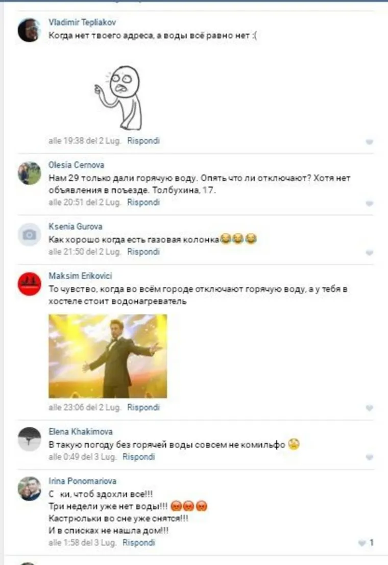 Горожан возмущает и тот факт, что их не информируют должным образом об отключениях: «У нас не было почти месяц… Еще по предыдущим адресам не включили горячую воду, а уже отключают по следующим… Дома нет и не было в списках, а воды горячей все равно нет».