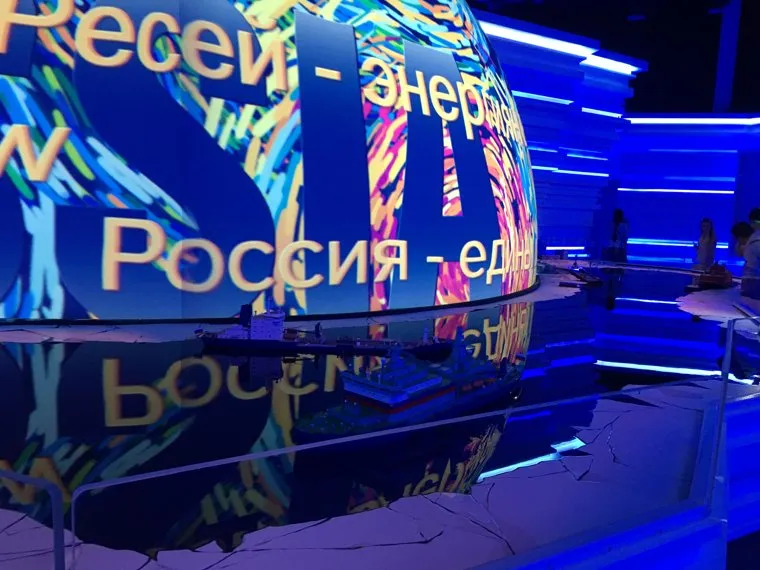 Еще в павильоне много мультимедийных экранов и движущихся макетов кораблей. Глаз режет только стенд «Уралкалия» и «Уралхима», которые преступно неуклюже пытаются притянуть свою презентацию к основной теме: «Мы берем энергию земли и перерабатываем ее в энергию роста растений».
