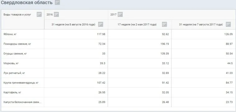 Статистика Росстата отчасти подтверждает переживания свердловчан. По ней видно, что на 7 августа 2017-го по сравнению с маем ощутимо подешевели только огурцы и помидоры. По выводам аналитиков, сейчас килограмм огурцов стоит 50,5 рубля, а помидоров — 88,9 рубля. В конце весны цены были выше более чем в два раза: 139,9 рубля и 196,2 рубля соответственно.