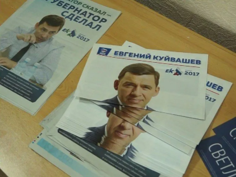 Эти предвыборные газеты Евгения Куйвашева были похищены из штаба партии