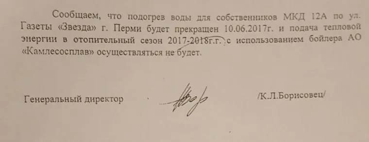 В своем письме Константин Борисовец ясно дал понять, что не подарит пермякам тепло и горячую воду