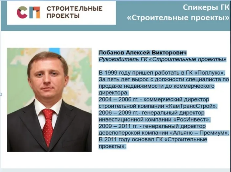 Генеральным директором «КамСтройИнвест» был как раз Лобанов. Сегодня он возглавляет группу компаний «Строительные проекты», которую сам же и основал в 2011 году. Структура занимается управлением проектами в сфере недвижимости.