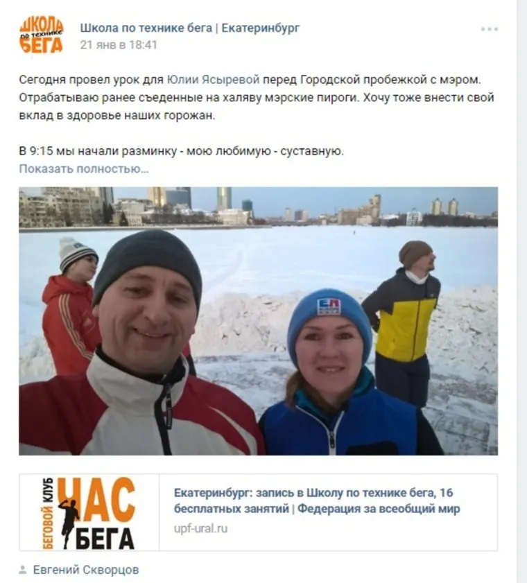 Во второй половине января между Евгением Скворцовым и Евгением Ройзманом устанавливаются дружеские отношения. Поклонник идей Муна хвастается в сообщении, что глава города уже угощает его за свой счет: «Отрабатываю ранее съеденные на халяву мэрские пироги». Под прикрепленной к сообщению фотографией уже нет никаких споров.