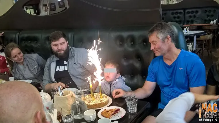 Первое фото Евгения Ройзмана с бегунами от Церкви Объединения. Евгений Скворцов стоит сзади, на возвышении