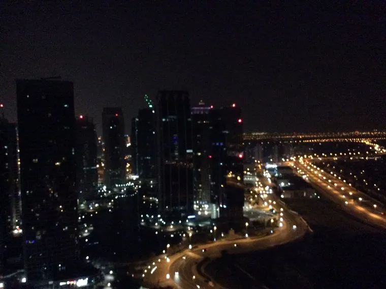 Дубай красив по ночам. Такой шикарный вид открывается с 32-го этажа Armada Blue Bay Hotel — кстати, хороший выбор для бизнесменов-путешественников