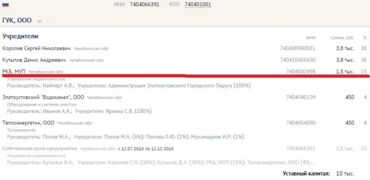 «Теплоэнергетик» тесно связан с ООО «Златоустовский водоканал». Например, они выступают соучредителями управляющих компаний. Номинальным собственником «Водоканала» является Светлана Яркина , бухгалтер фирм давнего партнера Ульяны Жилиной.