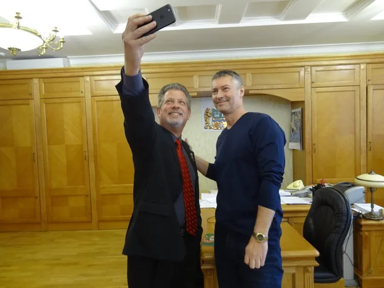 Гэри Пауэрс делает селфи с мэром Екатеринбурга Евгением Ройзманом