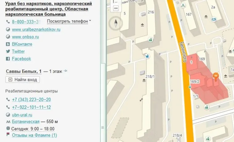 По данному адресу на карте 2GIS указаны две государственных организации Поддубного: «Урал без наркотиков» и «Областная наркологическая больница». Правда, в структуре ни того, ни другого учреждения нет подразделений, которые располагались бы по этому адресу. Зато, согласно реестру негосударственных организаций, осуществляющих реабилитацию наркоманов (утвержден в 2017 году Приказом свердловского минздрава), по данному адресу прописана некоммерческая организация «Центр социальной и психологической реабилитации «Уралец».