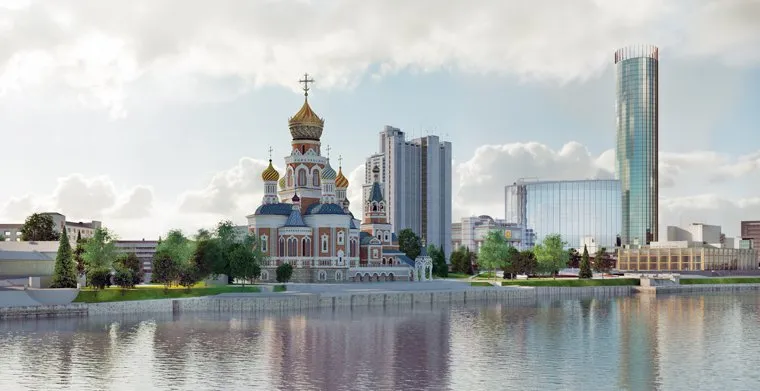 Храм святой Екатерины — первый в Екатеринбурге. Изначально располагался на нынешней площади Труда, но в советском Свердловске был взорван. В 2010 году на историческом месте его предлагал восстановить архиепископ Викентий, в 2016 году главы крупнейших компаний региона — Игорь Алтушкин («Русская медная компания») и Андрей Козицын («Уральская горно-металлургическая компания») — решили сделать подарок городу к 300-летию (отмечается в 2023 году) и построить новый храм. Их проект был нарисован на намывном острове в акватории городского пруда, что вызвало недовольство части горожан. В конце 2017 года было объявлено, что по геодезическим причинам строительство намывного острова проводиться не будет и храм построят на набережной.