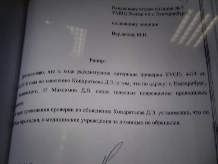 Также редакция обратилась в пресс-группу УМВД по Екатеринбургу c просьбой пояснить, почему участковые Мещерякова и Габдрахманов не завели дел на Кондратьева (при наличии всех оснований). «Рассмотрение материалов, о которых идёт речь в публикации, проводилось в соответствии с требованиями законодательства, — сообщили „URA.RU“ в отделениипо связям с общественностью Управления МВД по г. Екатеринбургу. — В настоящее время материалы находятся на рассмотрении суда».
