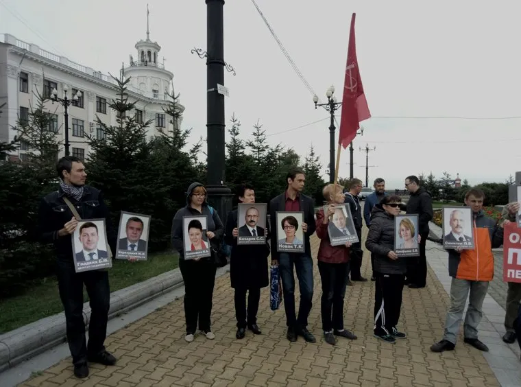 Митинг в Хабаровске. Протестующие принесли портреты депутатов, которые поддержали пенсионную реформу