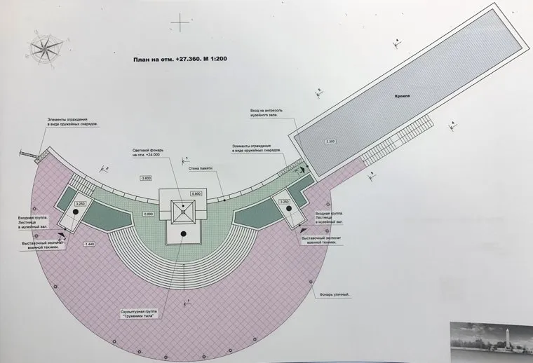 По бокам комплекса будут расположены стены памяти с названиями заводов, ковавших Великую Победу. Завершаться по краям памятник будет большими постаментами с установленными на них танками и надписями «1941» на одном и «1945» на втором. Последний будет началом помещения музея, посвященного труженикам тыла.