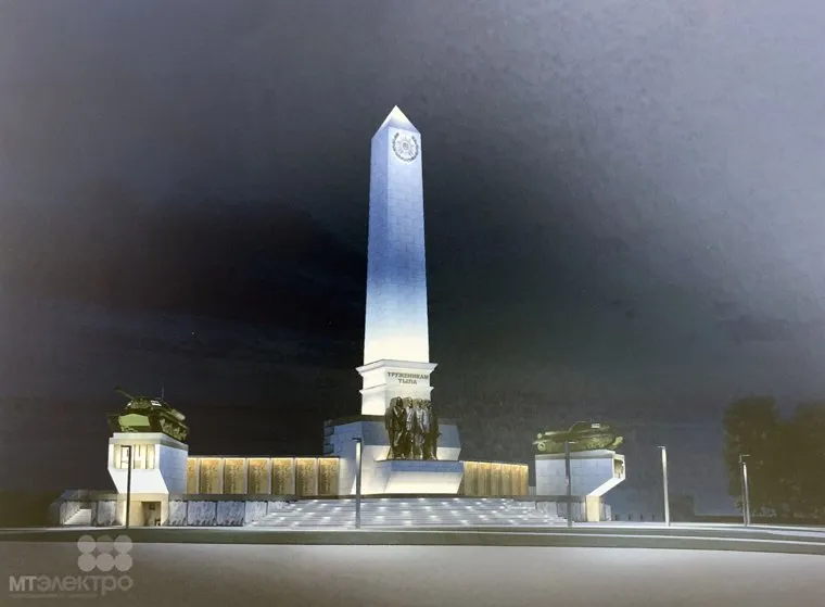 Центром музейного комплекса, как следует из эскизов, оказавшихся в распоряжении «URA.RU», станет большой монумент. Это стела-параллелепипед с надписью «Труженикам тыла», увенчанная пирамидой, которую могут превратить в подобие маяка. Стела будет подсвечиваться ночью. Под стелой расположатся четыре фигуры: двое взрослых, между которыми стоят двое детей — мальчик и девочка.
