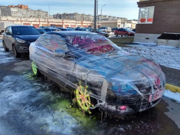 Припаркованные машины в «воспитательных» целях все чаще стали заматывать в пленку