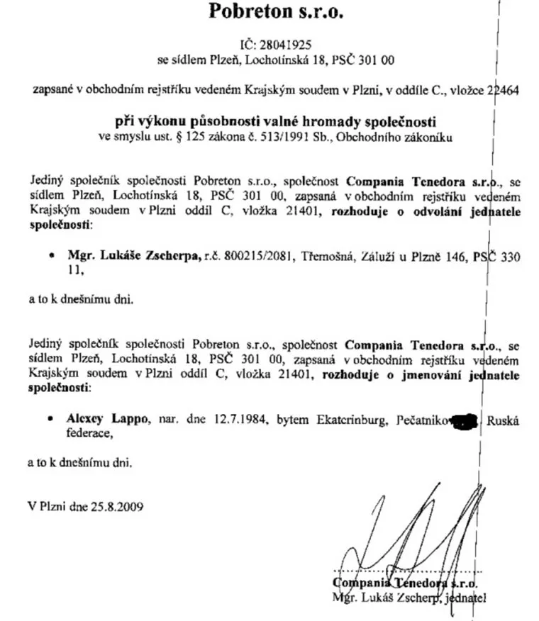Договор о передаче чешской фирмы под руководство Алексея Лаппо