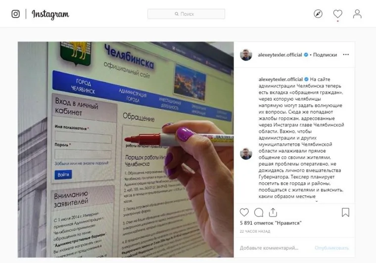 Алексей Текслер отправил своих подписчиков на сайт мэрии Челябинска