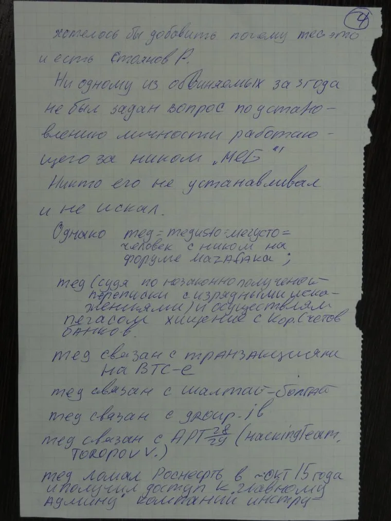 Письма Козловского из СИЗО с пояснениями про Lurk, Pegassus и т. д.