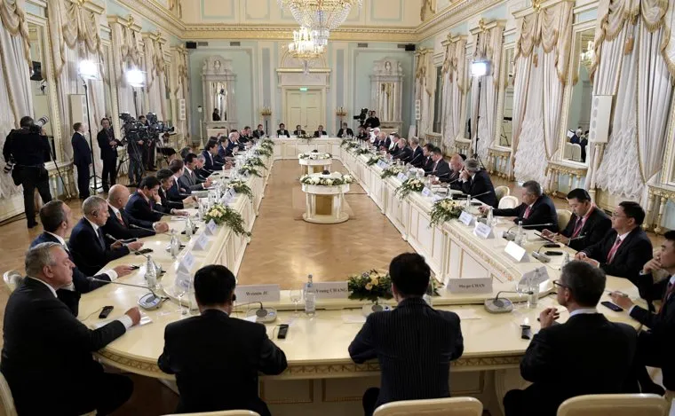 Общение с журналистами сменилось разговором с представителями инвестиционных фондов Германии, Франции, Японии, Китая, Южной Кореи, Индии, Италии, ОАЭ, Саудовской Аравии — все они совокупно управляют капиталом свыше 15 триллионов долларов. Общаясь с ними, глава государства выразил надежду, что встречи на форуме «будут полезными, содержательными и создадут условия для развития бизнеса в России».
