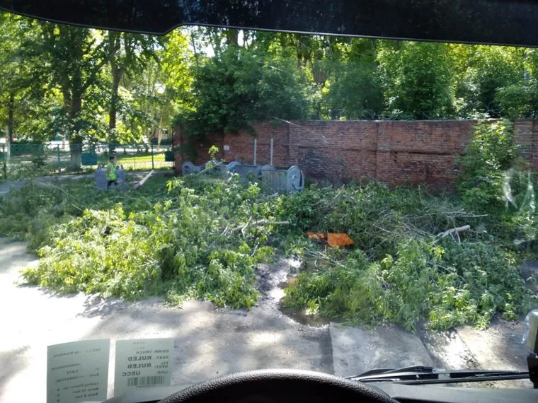 Из-за наваленных веток к мусорке невозможно подойти