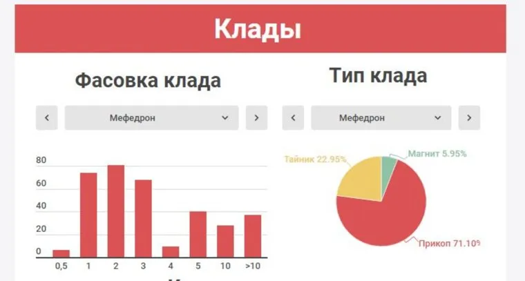 «Больше всего в городе кладов с мефедроном — я насчитал их минимум 2710, — сообщает эксперт. — На втором месте гашиш (2467), на третьем — кокаин (2195). Общее количество кладов — 13531, общий вес кладов более 300 кг и общая стоимость более 150 млн рублей». Среди типов закладок превалирует прикоп, на него приходится примерно 40% всех кладов, магнитов — 33%, тайников — 25%. Больше всего кладов лежит на конечных станция метро, близких к лесопаркам.